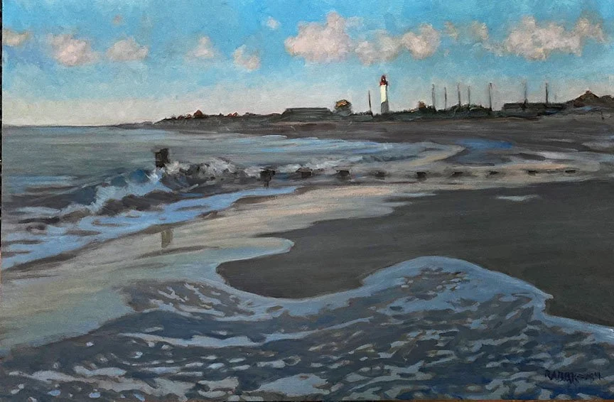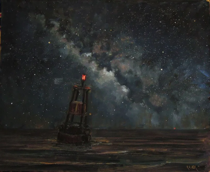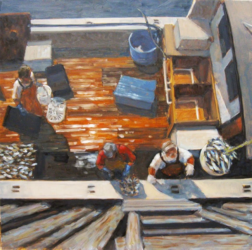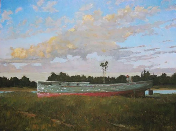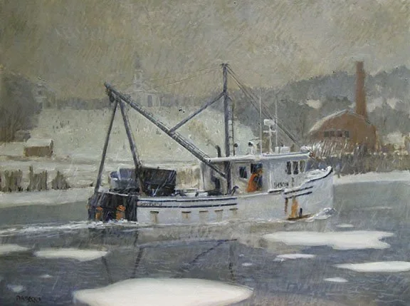 When the rumble of diesel engines would wake me at four in the morning, I’d prop myself up and look out the window to watch the running lights crawl across the harbor. At times, I could hear the lobstermen’s voices and the muffled creaks and thumps of them rowing to their boat moorings and stowing the oars. The time I spend on the coast of Maine, and the people I meet, are close to my heart. This gallery is a portfolio of both studio and plein-air paintings.